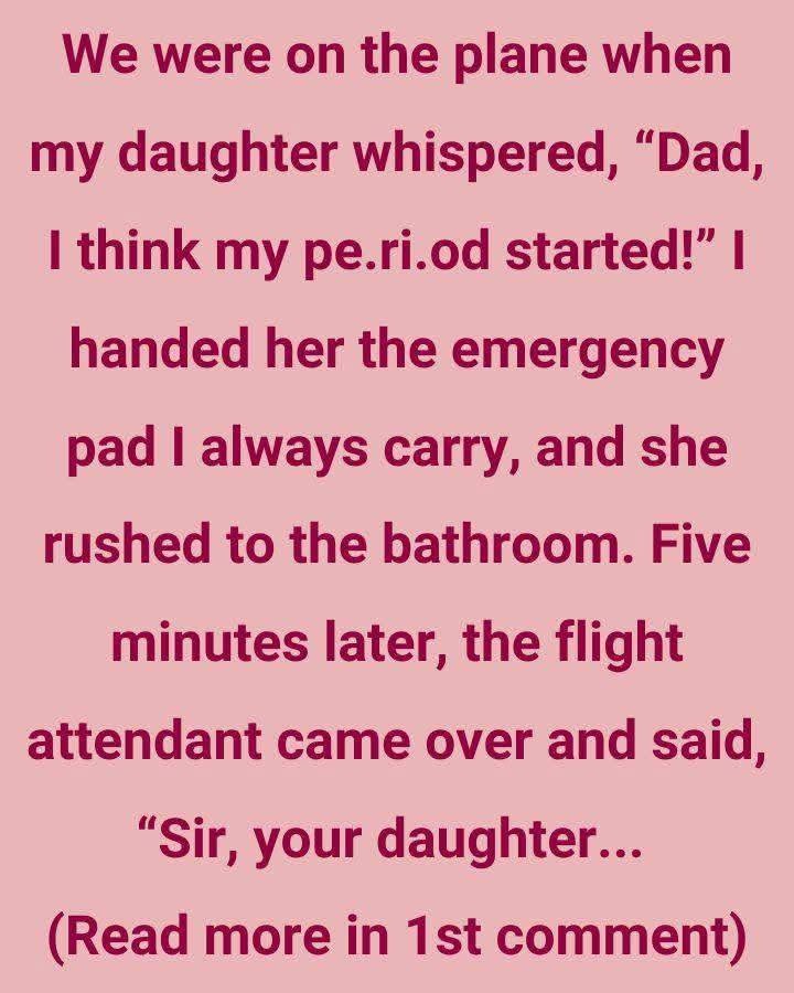 Once, while we were flying, my daughter leaned over and whispered, “Dad, I think I just got my period.” I gave her the emergency pad I always keep with me, and she hurried to the restroom. A few minutes later, the flight attendant came by and said, “Sir, your daughter asked if you have a real pad. She said you gave her a liner.”