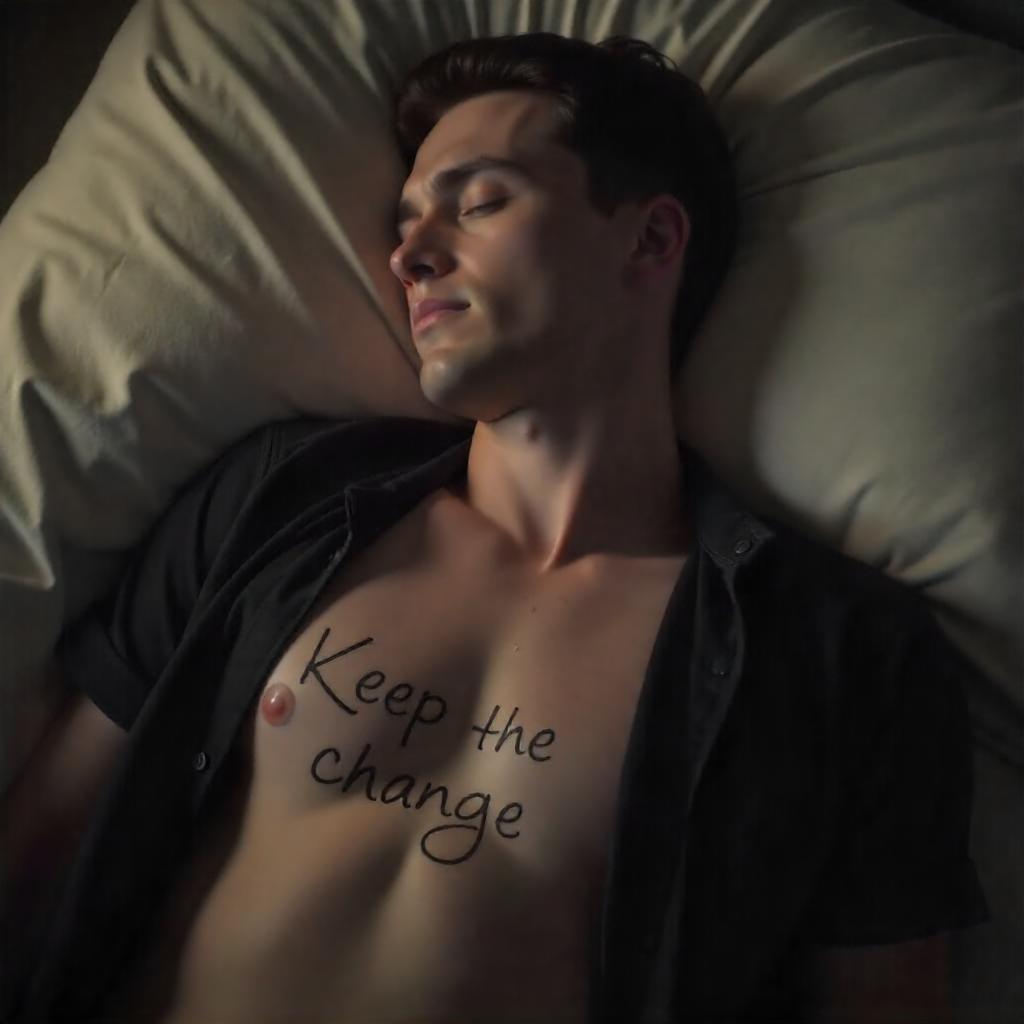 A poénos üzenetem fölé valaki odaírt egy választ. A férjem mellkasára írt üzenet így nézett ki: „Tartsd meg a visszajárót.”