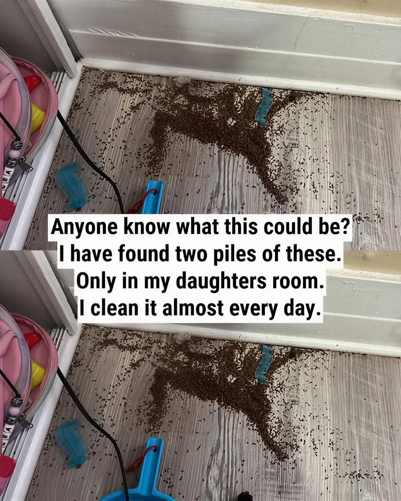 Picture this: You’re doomscrolling through a parenting group at 10 p.m., half-awake, when a post stops your thumb mid-swipe. A photo fills your screen—two small piles of something brown and granular on a bedroom floor. Not quite coffee grounds. Not quite dirt. The caption sends a chill down your spine: “Anyone know what this could be? I found two piles of these… in my daughter’s room.”