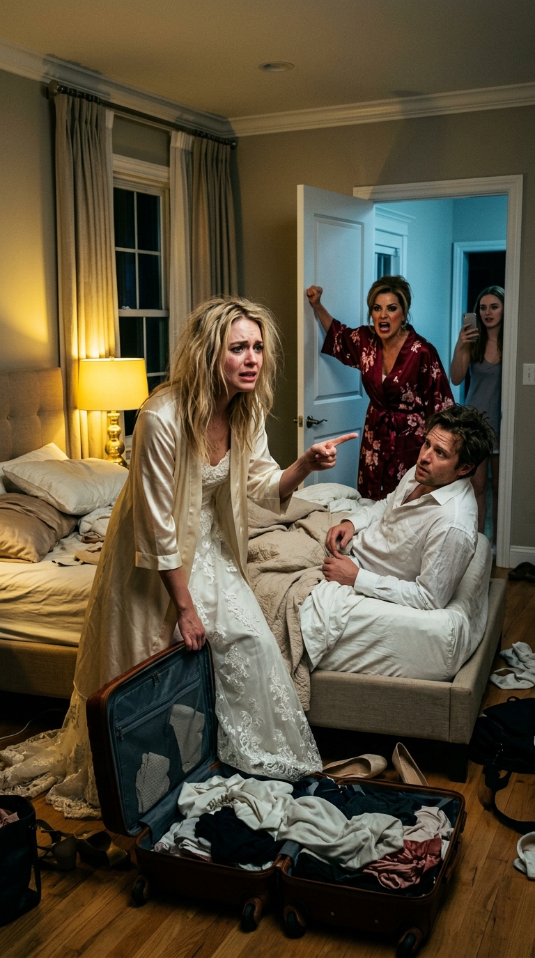 For one second, I honestly thought he was joking. The reception had ended after midnight. We’d spent barely two hours alone. I had pins still hidden in my hair and blisters on both heels from standing all day smiling for his relatives, most of whom had already treated me less like a bride and more like a new employee.