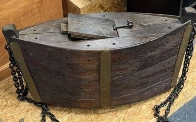 “Thrift store find: made of hardwood, features a solid iron chain and brass plates, hollow inside. Any thoughts?