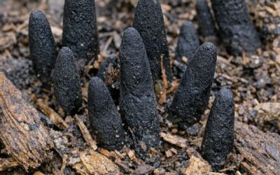 Stumbled across these black, finger-like things poking out of the mulch in my backyard. They are hard and creepy. Does anyone know what this is?.