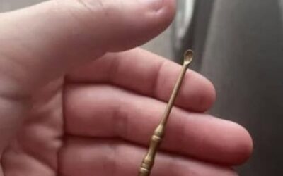 My son found this in a drawer in our house that had been kept locked for years and years. Finally, we were able to open it. What is it? It’s NOT a spoon. It’s too tiny for that.