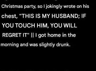 Before the company Christmas party, I wrote a funny message on my husband’s chest and received an unexpected response.