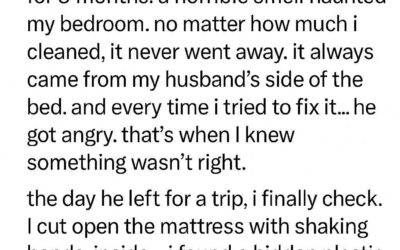For Three Months, My Husband’s Side of the Bed Smelled Like Something Was Rotting… When I Finally Cut It Open, the Truth Destroyed Everything For three long months, every night I lay beside my husband, I was haunted by a smell so foul it turned my stomach and kept me awake in the dark. At first, I convinced myself it had to be something simple. Dirty sheets. Damp blankets. Maybe food spilled and forgotten. Maybe sweat trapped deep in the mattress under the Arizona heat. So I cleaned. I stripped the bed again and again. Washed everything in scorching water. Scrubbed the frame until my hands hurt. Replaced the pillows. I even hauled the mattress out onto the balcony, letting it bake under the brutal Phoenix sun, hoping whatever was trapped inside would be burned away. It didn’t work. No matter what I did, the smell always came back. And it always came back strongest on Miguel’s side. It wasn’t normal. It wasn’t just sweat or mildew. It was heavier. Sourer. Wrong. Like dampness mixed with decay. Like something rotting beneath the surface. The kind of smell that clings to the back of your throat and refuses to leave. The kind that makes you dread going to sleep. Miguel and I had been married for eight years. We lived in a small house in Phoenix. He worked as a regional sales manager, always flying off to cities like Los Angeles, Chicago, and Dallas while I stayed behind, holding our quiet life together. Our marriage wasn’t perfect. But I thought it was stable. Safe. At least… that’s what I kept telling myself. Because as the smell grew worse, something else changed too. Miguel started watching me whenever I got near the bed. The first time I deep-cleaned his side, he walked in and stopped cold. “What are you doing?” he asked. “Cleaning,” I said. “That smell is getting worse.” His jaw tightened. “You’re imagining things.” I let out a small laugh, waiting for him to soften. He didn’t. After that, every time I touched the sheets or reached for anything near his side, his mood shifted instantly. He became sharp. Defensive. Irritated in a way that made no sense. Then one night, when I said I was going to wash everything again, he snapped. “Don’t touch my things. Leave the bed alone.” I just stood there, staring at him. In eight years, I had never seen him react like that over something so ordinary. And in that moment, something cold and quiet began to grow inside me. Because people don’t panic like that… unless there’s something to hide. After that, I couldn’t stop noticing things. How quickly he shut down any mention of the smell. How tense he became if I got too close to his side of the mattress. How he lay there at night pretending everything was normal, while I lay stiff beside him, breathing through my mouth, wondering what I was actually sleeping next to. Then came the night I couldn’t take it anymore. The smell felt alive. I lay in the dark, eyes wide open, heart pounding, convinced something beneath us was decaying. My chest tightened. My skin prickled with dread. It wasn’t just the smell anymore. It was the feeling. That something in my life had gone terribly, horribly wrong… and I had been too afraid to face it. The next morning, Miguel told me he was leaving for Dallas for three days. He rolled his suitcase to the door, kissed my forehead, and said, “Make sure you lock up.” I nodded. But the weight in my chest felt crushing. When the door closed behind him and his footsteps faded away, the house fell into a silence that felt unnatural. I stood there for a long moment, staring at the door. Then slowly, I turned toward the hallway. Toward the bedroom. Toward the bed. My heart started pounding so hard I could hear it in my ears. Something is wrong. And this time… I’m going to find out what. I dragged the mattress into the middle of the room by myself. My hands were already shaking when I went to the kitchen and grabbed a box cutter. The house felt too quiet, like it was waiting. I knelt beside the mattress and pressed the blade into the fabric. Then I made the first cut. The second the material split, the smell exploded out. I gagged instantly. Stumbling back, I covered my nose, coughing so hard my eyes filled with tears. It was worse than anything I had imagined. Not just bad. Not just disgusting. Unbearable. The stench of something sealed away for far too long. Something wet. Something spoiled. Something never meant to be hidden where I had been sleeping every single night. My hands trembled as I forced myself closer. I cut deeper. The foam began to part. And then I saw it. Not a dead animal. Not old food. Not just mold. A large plastic bag sat buried inside the mattress, tightly wrapped, its surface marked with dark patches of mildew. For a moment, I couldn’t move. I just stared. My entire body went cold. Because whatever Miguel had hidden in there… he had done it carefully. Deliberately. Like he never wanted it found. With shaking hands, I reached in and pulled the bag free. And the moment I opened it… My legs gave out beneath me. Because what was inside that mattress wasn’t just horrifying. It was the proof of a truth I had been too afraid to admit for a very, very long time.