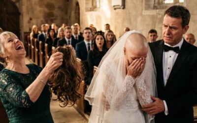 During my wedding, my mother-in-law came up to me and ripped off my wig, revealing my bald head to all the guests. But then something unexpected happened 🫣😢 Until recently, I was battling can.cer. Long months of treatment, hospital walls, chemotherapy that slowly sapped my strength and hair… But one day, I heard the most important thing from the doctor: “”You are healthy.”” On that same long-awaited day, my beloved proposed. I burst into tears of happiness and, of course, said “”yes.”” We began planning the wedding. For several weeks, I searched for a dress, thought through the details, and secretly hoped that my hair would at least grow a little. But no—in the mirror, I still saw my bald head. I had to find a suitable wig to feel confident. I was incredibly worried about what people would think of my appearance. Many of the groom’s relatives knew I had health issues, but I didn’t tell them what exactly, so I hoped they wouldn’t notice the wig. And then came the long-awaited day. I was in a white dress, the groom was by my side, the church was filled with light and quiet conversations. Everything seemed perfect… until she approached. My mother-in-law. She had always disliked me, and I knew perfectly well why. She believed I wouldn’t be able to give her son children, and that he could marry a “”healthy”” woman. She approached silently, and the next moment I felt the wig being ripped from my head. I heard her loud, almost triumphant laugh: “”Look! She’s bald! I told you, but you didn’t believe me!”” 😢😢 Laughter erupted in the hall; some turned away, others froze. I stood there, pressing my hands to my head, tears stinging my eyes. I felt ashamed, hurt, and offended. My groom hugged me, trying to calm me down, but I could feel his hand shaking. And then something unexpected happened, after which my mother-in-law deeply regretted her actions.