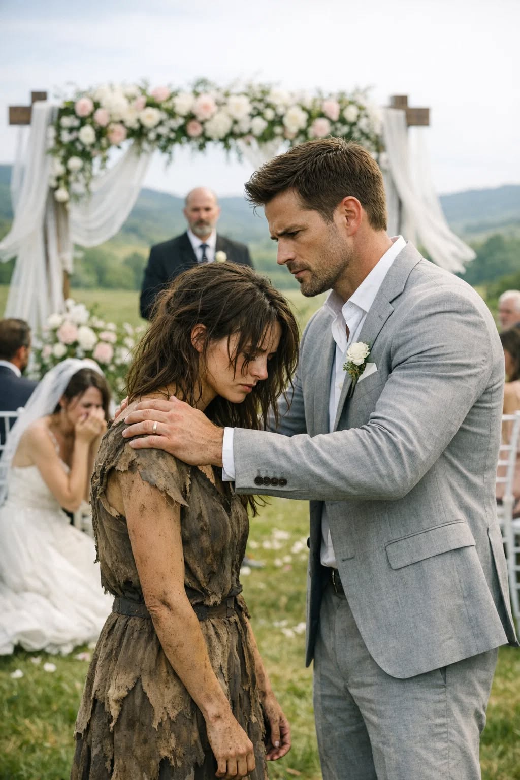The contrast is so brutal your stomach twists, and you realize you’re not watching a stranger interrupt a wedding, you’re watching a lie return to collect interest.