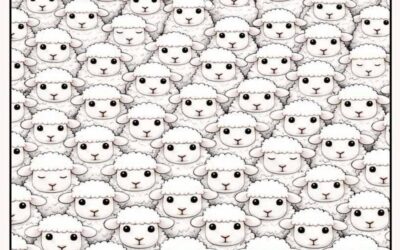 At first glance, the image looks simple: a field packed with adorable cartoon sheep. But hidden among the wide-eyed faces…