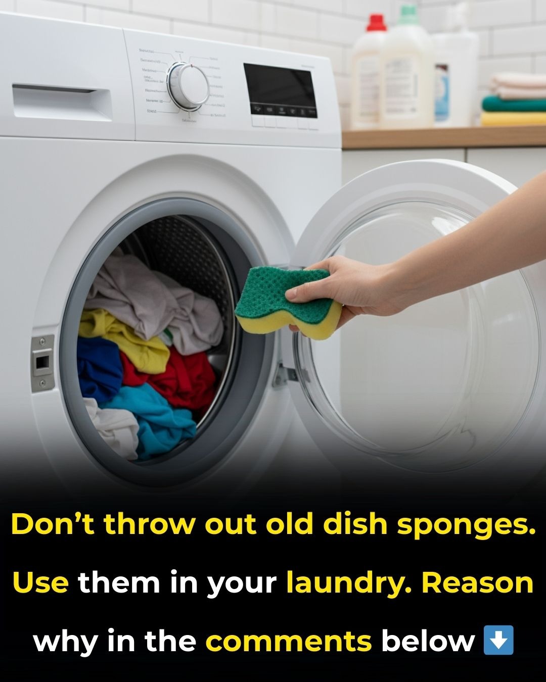 Most people throw away old kitchen sponges as soon as they start to wear out… but what if you could give them a second life—and make your laundry cleaner at the same time?