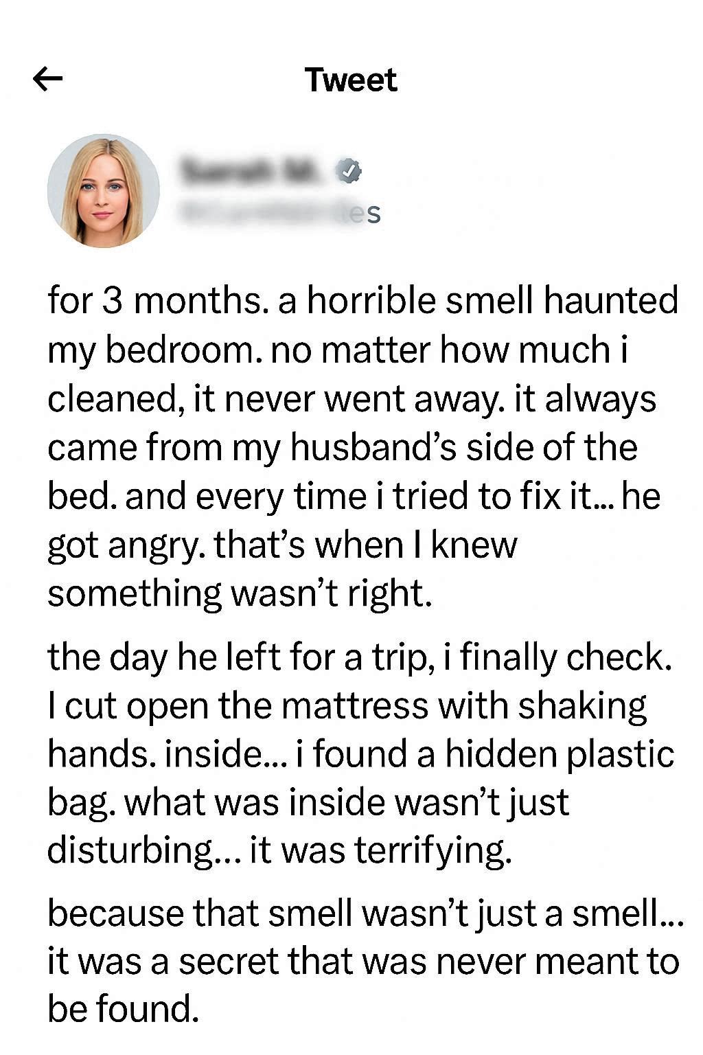 For Three Months, My Husband’s Side of the Bed Smelled Like Something Was Rotting… When I Finally Cut It Open, the Truth Destroyed Everything