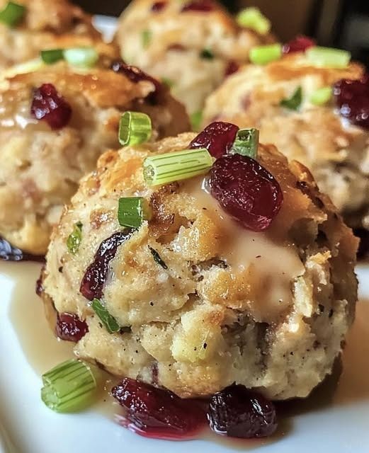 Golden cranberry turkey stuffing balls — tender, savory, and bright with cranberries.