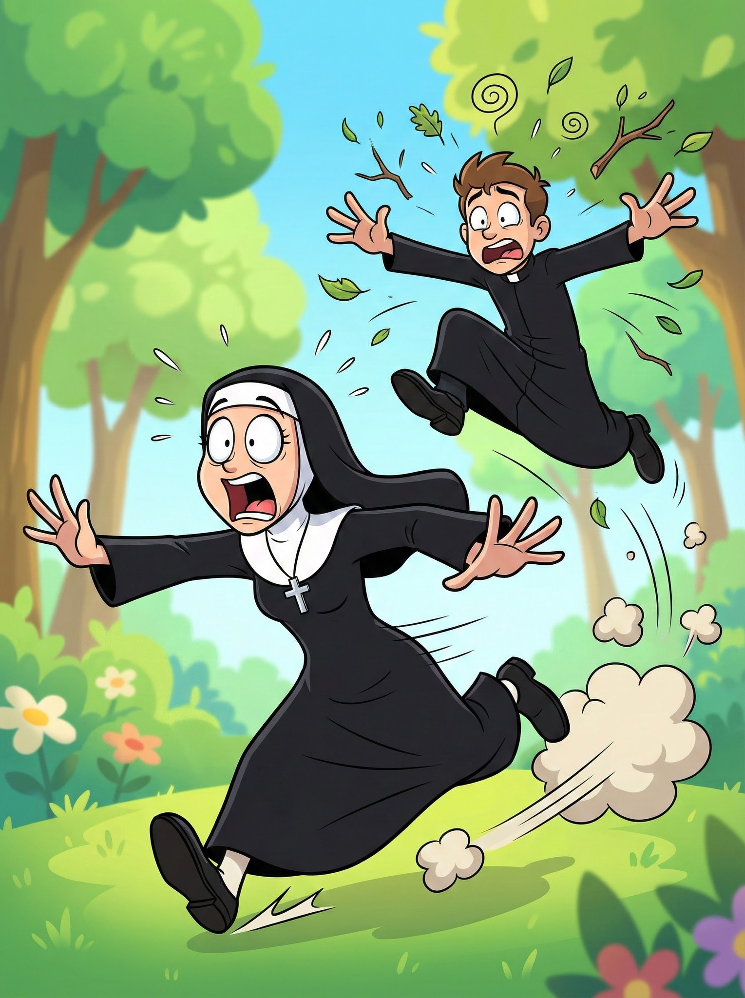 “Sister, it’s getting dark and we are still far from the convent. Have you noticed that a man has been following us for the last half hour?” “Yes, and what do you think he wants?” “The logical thing: he wants to attack us.” “Oh, God! I calculate that if we keep up this pace, he’ll catch up to us in about 15 minutes.” “What can we do?” “The most logical thing is to walk faster.”