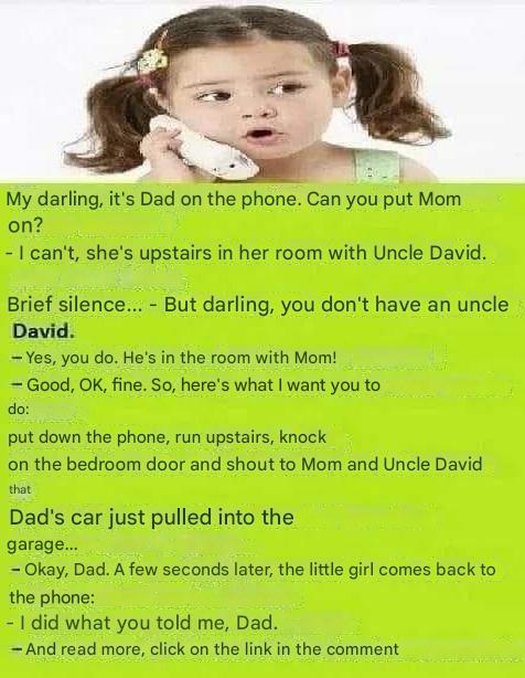 After a few seconds, someone answered. It was a little girl. The father then asked her: "Hello sweetheart, it's Dad on the phone... Can you put Mom on?"