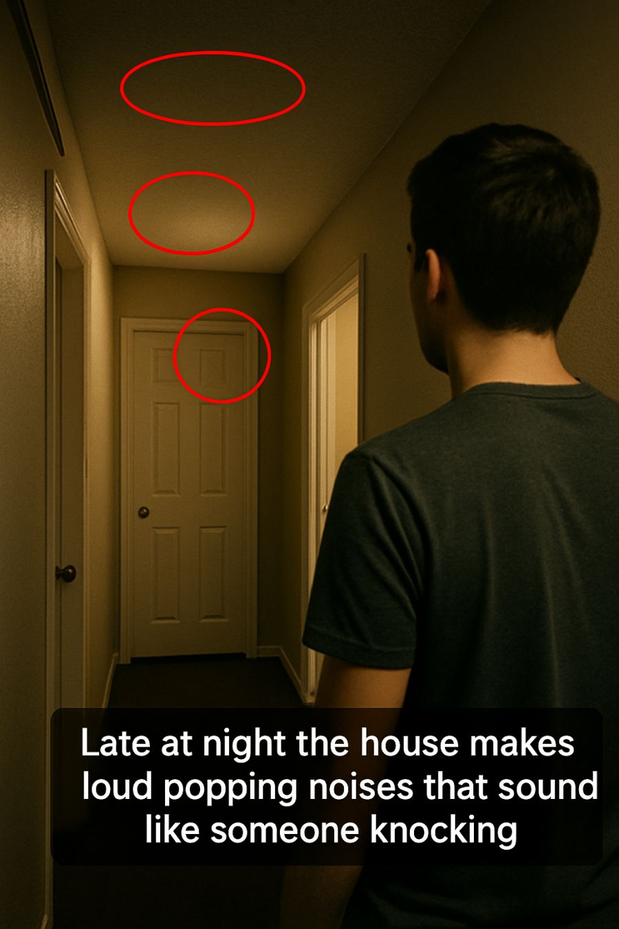 When the wood expands during the day and contracts at night, it can creak, pop, or even snap as it adjusts to the changing temperatures. These sounds are a normal part of the house’s response to its environment and typically do not indicate a structural issue.