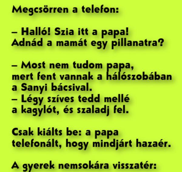 – Most nem tudom papa, mert fent vannak a hálószobában a Sanyi bácsival.