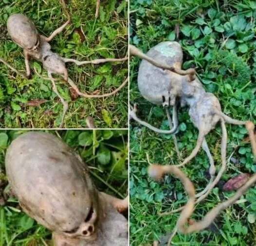 When a woman woke up to find something in her backyard that completely baffled her, she searched online for answers. The object looked downright “alien” to her: it had an elongated skull and a narrow torso, as well as long, cane-like limbs sticking out in place of arms and legs.
