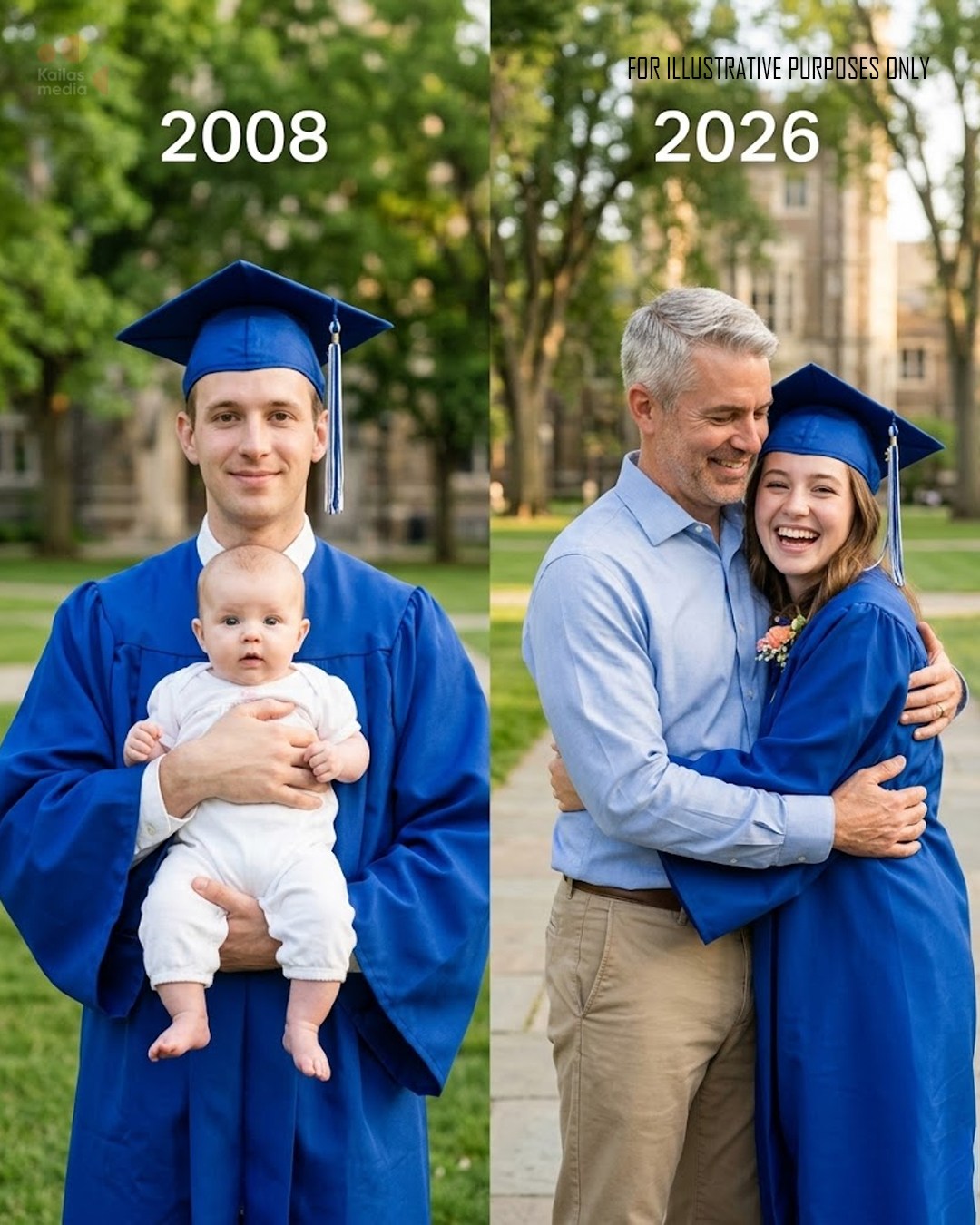 The picture shows a skinny teenage boy standing on a football field wearing a crooked graduation cap. He looks completely terrified. In his arms is a baby wrapped tightly in a blanket.