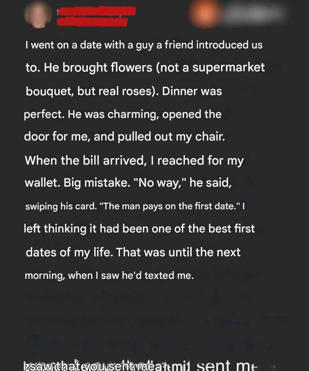 Honestly, I was impressed. Flowers and a small gift on the first date? This man clearly wanted to show he was someone important. He was either interested or a master of first impressions.