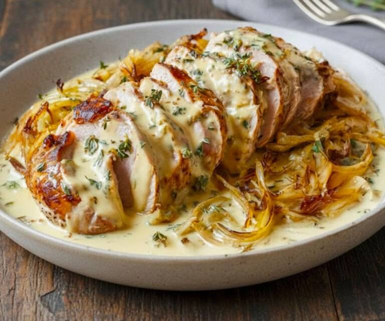 Tender and juicy pork tenderloin is an often underestimated cut of meat in cooking. Yet, when prepared properly, it becomes the star of our plates. In this version, it’s accompanied by slowly caramelized onions, which impart an irresistible sweetness and a delicately sweet aroma.