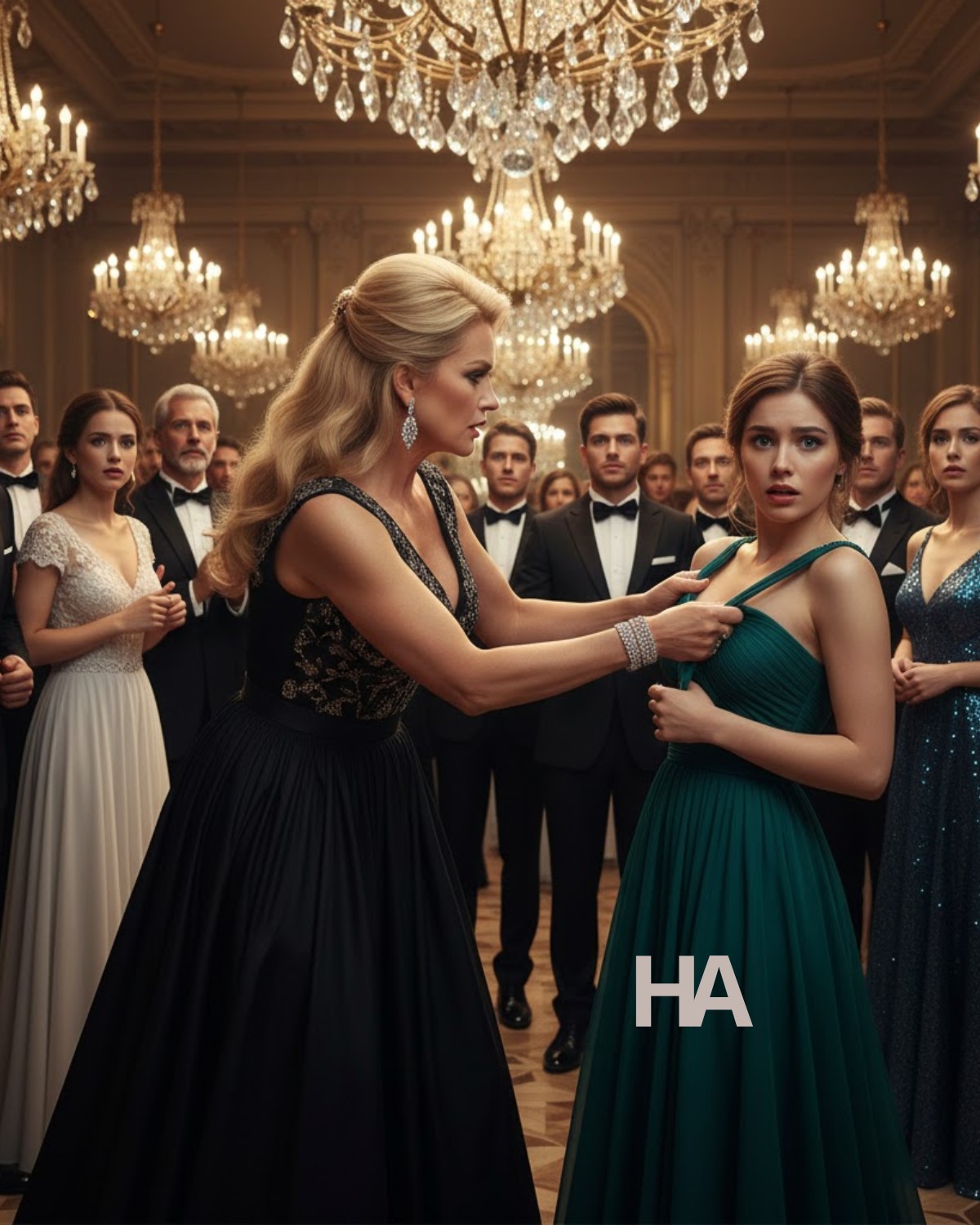 Beatriz reaches for the neckline of your dress without permission, without hesitation, like your body is public property. For a half-second you don’t even process what’s happening. Then her fingers clamp down and she yanks. The fabric tears with a sound that slices through the ballroom—too loud, too final, like a door being ripped off its hinges. Breath catches in the crowd. Someone gasps. Someone laughs under their breath. Heat floods your face, and your hands fly up on instinct to cover what the dress no longer can. Your heart is pounding so hard it feels like it might crack your ribs.