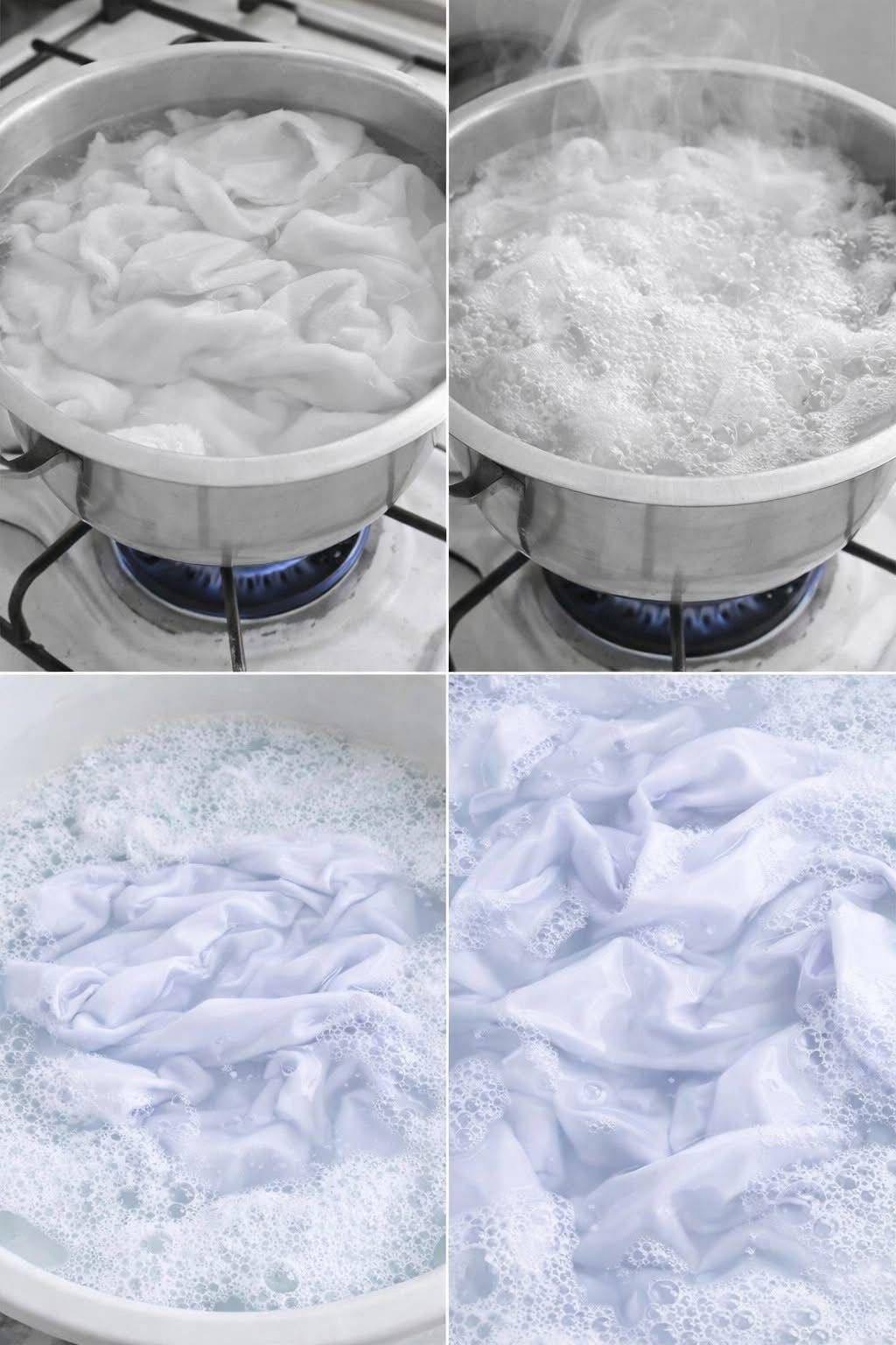 Step 2: Add your clothes (e.g., white towels or sheets) to the boiling water and let them simmer for 30 minutes to an hour.