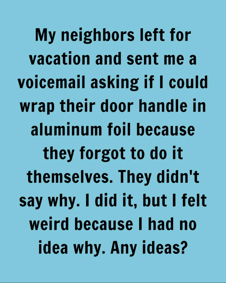 The idea is simple. Before going to bed or leaving the house, wrap a layer of smooth aluminum foil tightly around your outside door handle. When you return, check the foil — if it’s wrinkled, dented, or torn, it could be a sign that someone tried to open the door while you were away. This quick visual cue can alert you to suspicious activity without any fancy equipment.