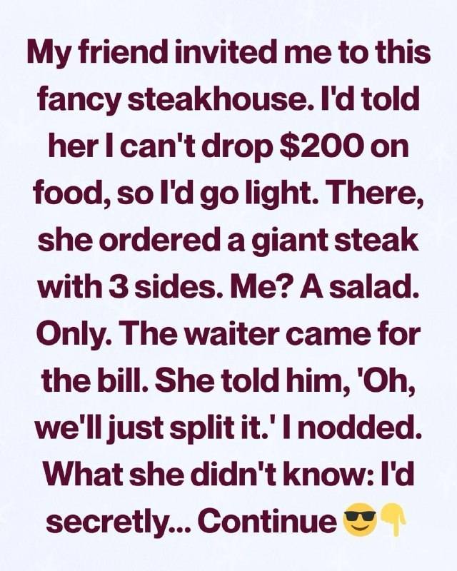 She ordered the most expensive items, sides, and wine without a second thought, while I stuck to a simple salad. The conversation felt heavy; I recognized a familiar pattern of expectation and assumption. When the bill arrived, she casually suggested splitting it. I nodded silently, giving myself time to act with intention rather than reaction. As soon as she stepped away, I quietly called the waiter over and asked him to add three entrées to go.
